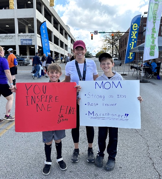 In 2008, I was interested in a guy who was running a marathon and he asked me if I wanted to come and watch. This was before smart phones so I asked another spectator, “How far is a marathon?” (It’s 26.2 miles.) I watched in amazement as the wheelchair racers finished, the elite men, the elite women, and then the rest of them. All genders, age, shape, and size. I cried when they hugged their families at the end or hugged the volunteer who was giving them their finishing medal. I was inspired. Oh, and I married the guy I was there to watch.